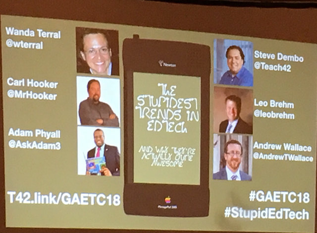 Day one of the GaETC 2018 conference was a blast. There were four sessions in particular that I’d like to share a little bit about. One was an amazing list of educational technology that was initially thought of as stupid, one was on using animation for education, while the others concentrated on programming and coding.