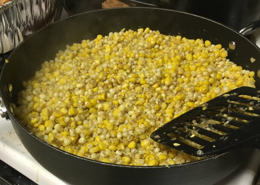 5. Once the butter melts and has coated the corn, add pepper to taste. I like a lot.
